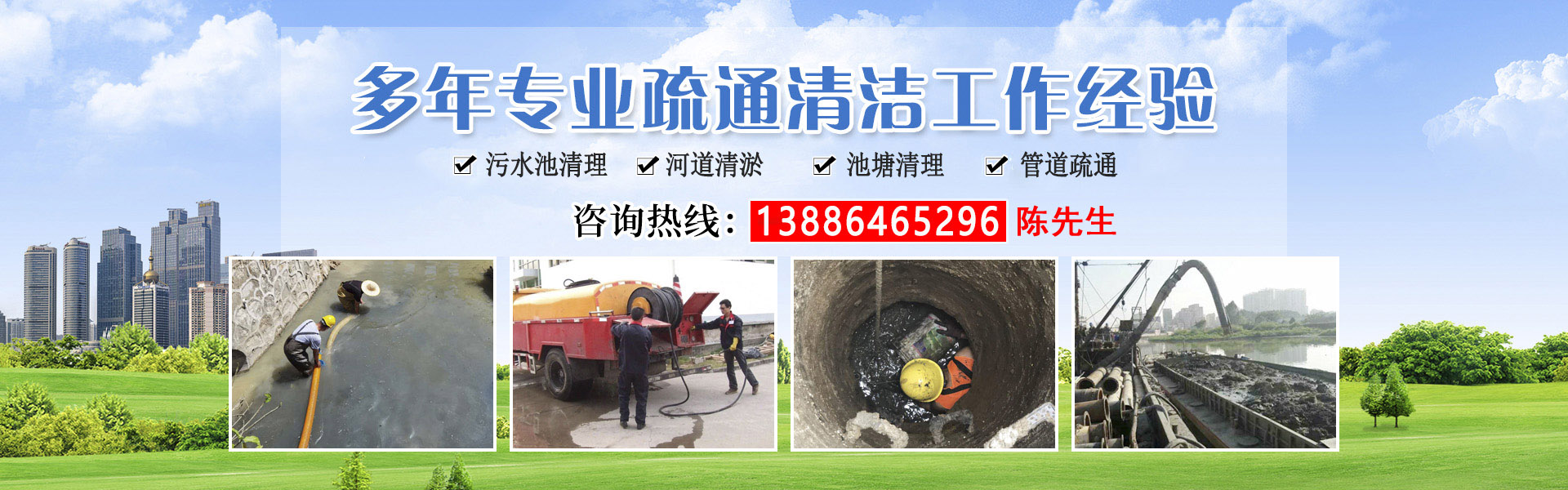 专业从事业务:池塘清理、 管道疏通、污水池清理、河道清淤、市政管道疏通、管道清淤、排水排污、下水道清淤、明渠清疏、暗渠清理、雨水管道疏通、污水沟清理、淤泥清理、泥浆抽运、河涌清淤清理、沙井清理、鱼塘清淤、涵箱清淤、人工湖清淤等。